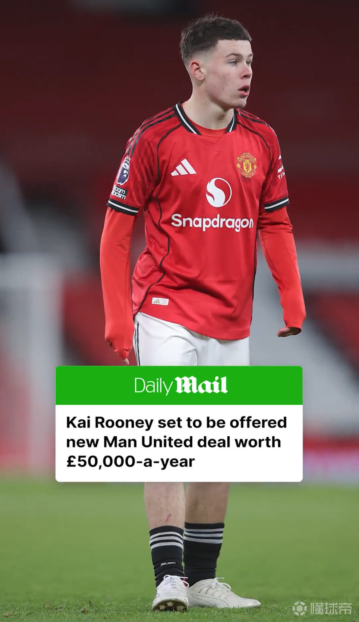 据英媒报道,鲁尼之子凯·鲁尼已获得曼联提供的新合...